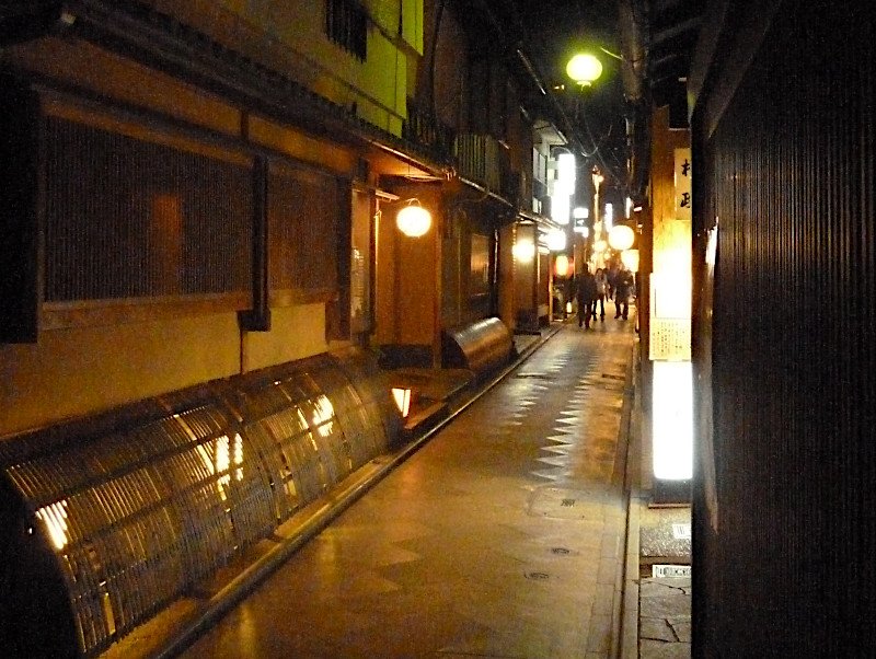 Pontocho (先斗町, Pontochō) is one of Kyoto's most atmospheric dining areas. It is a narrow alley running from Shijo-dori to Sanjo-dori, one block west of Kamogawa River. The alley is packed with restaurants on both sides offering a wide range of dining options from inexpensive yakitori to traditional and modern Kyoto cuisine, foreign cuisine, and highly exclusive establishments that require the right connections and a fat wallet.